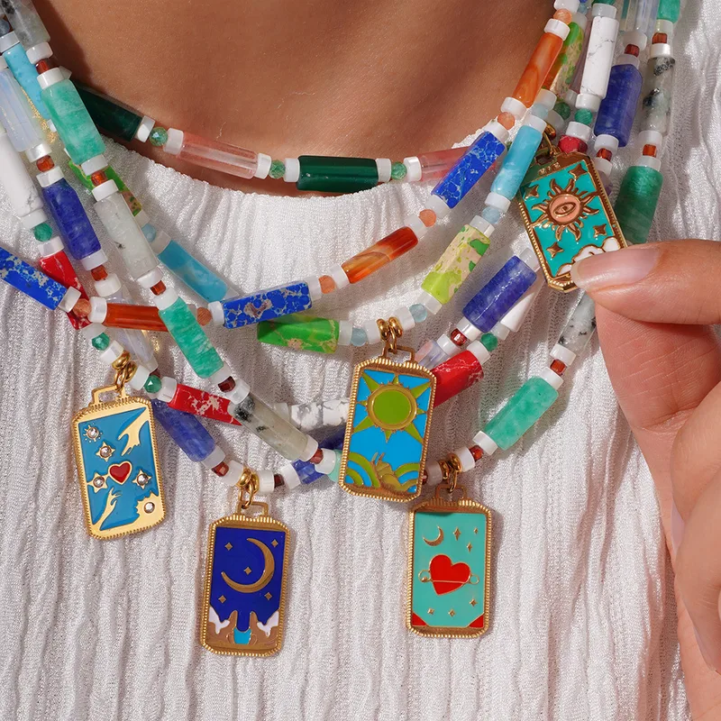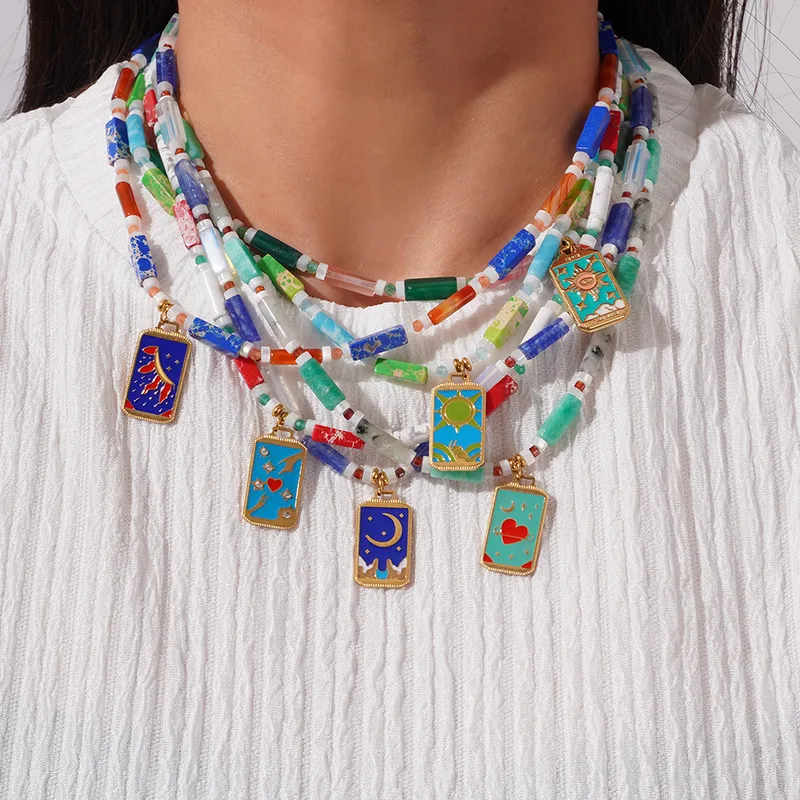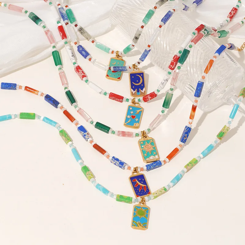 Wholesale Vintage Style Classic Style Geometric Sun Heart Shape natural stone Titanium Steel Enamel Women's Pendant Necklace