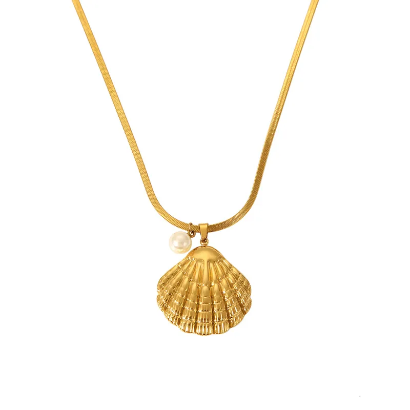 Wholesale Vintage Style Classic Style Scallop Starfish 304 Stainless Steel Plating 18K Gold Plated Women's Pendant Necklace