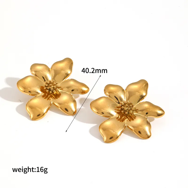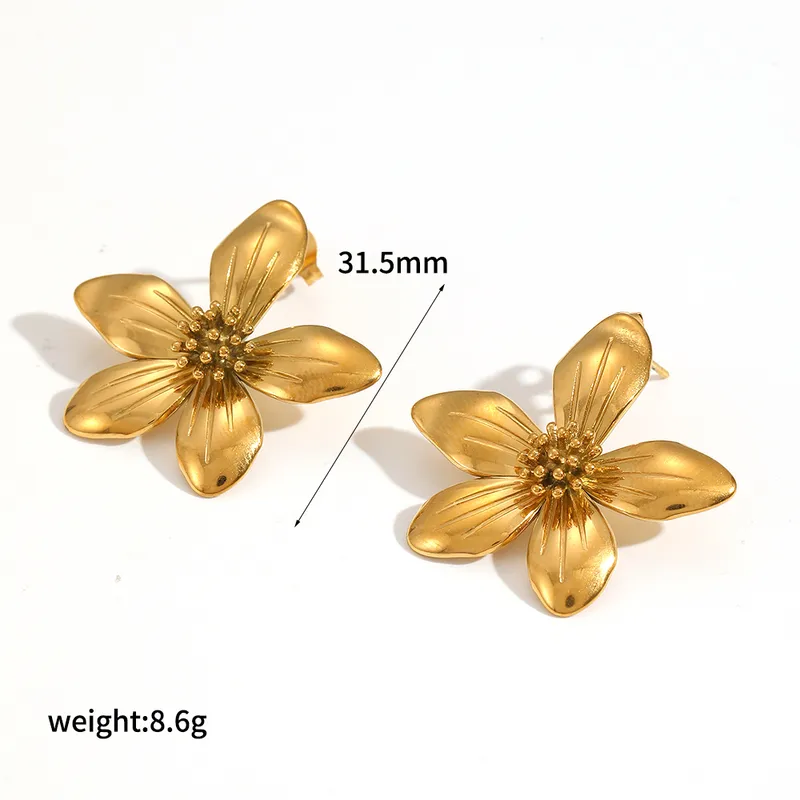 Vintage Style Flower 304 Stainless Steel 18K Gold Plated Women's Charms Earrings Necklace
