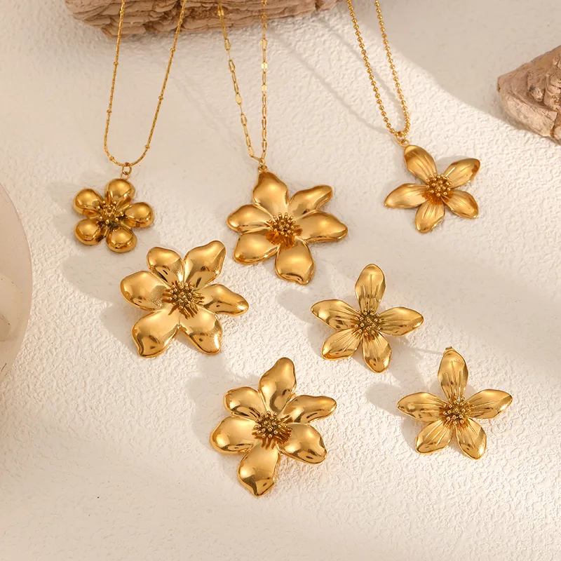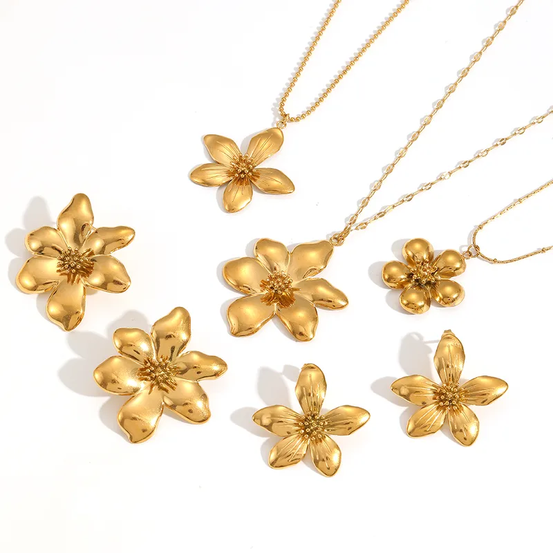 Wholesale Vintage Style Flower 304 Stainless Steel 18K Gold Plated Women's Charms Earrings Necklace