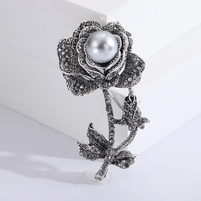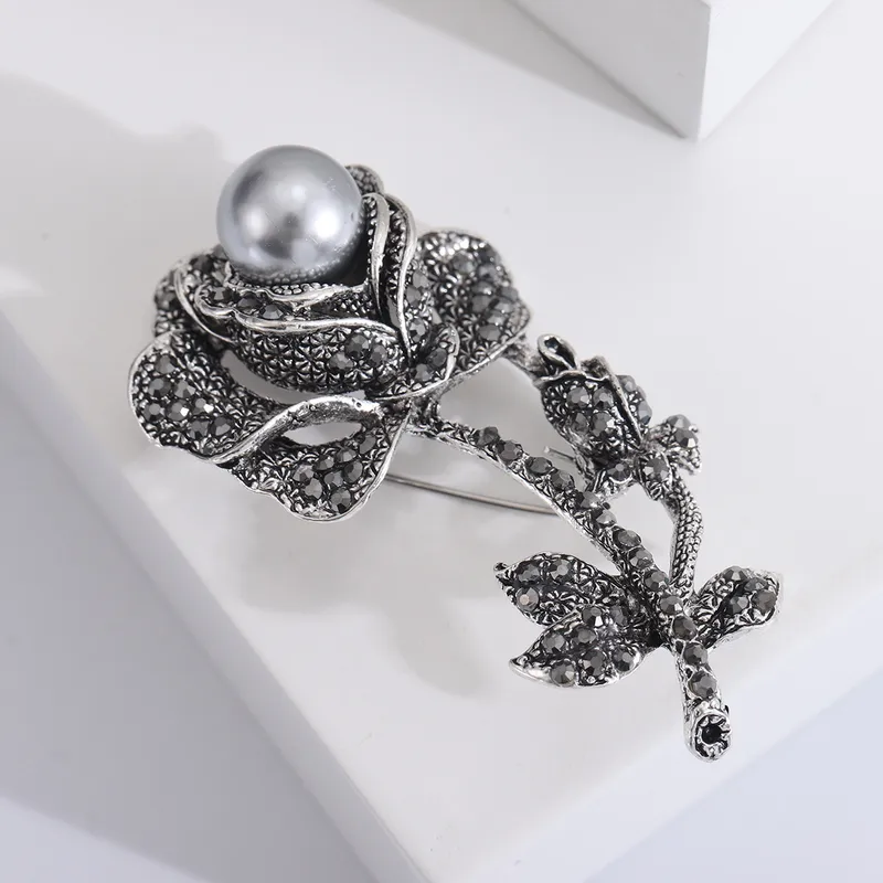 Wholesale Vintage Style Flower Alloy Artificial Pearls Rhinestones Women's Brooches
