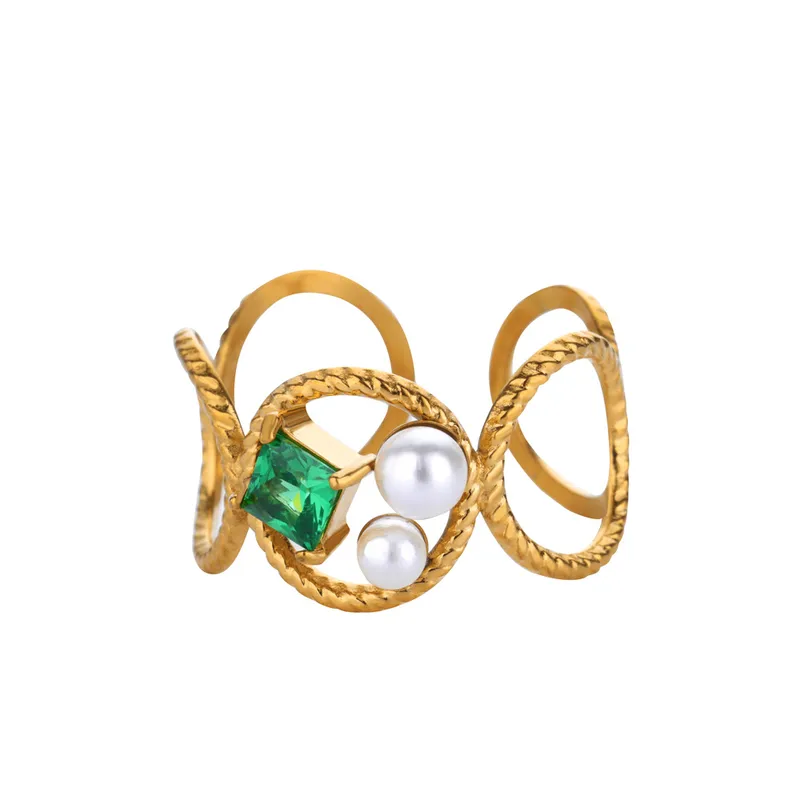 Wholesale Vintage Style French Style Geometric 304 Stainless Steel Plating Zircon 18K Gold Plated Women's Open Rings