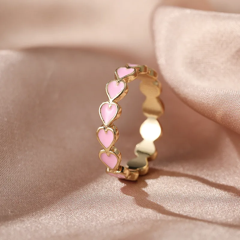 Wholesale new alloy drop oil love ring creative candy color peach heart ring personality simple index finger nhpj440175