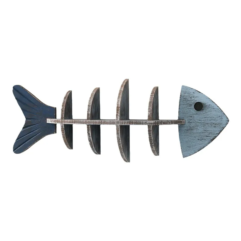 Vintage Style Marine Style Fish Fish Bone Wood Pendant Storage Rack Storage Rack Wall Art