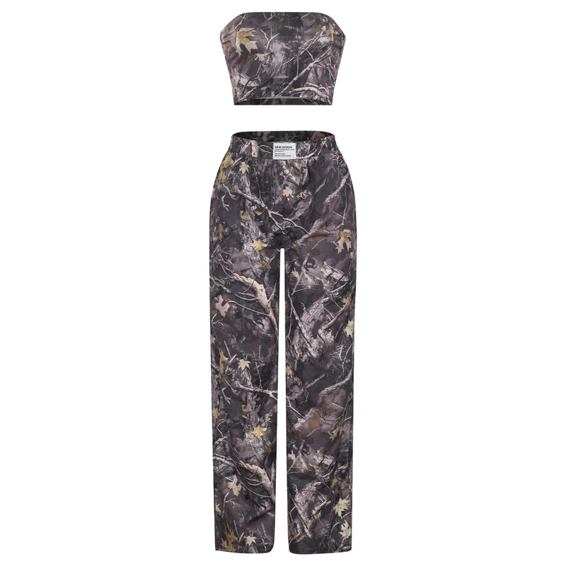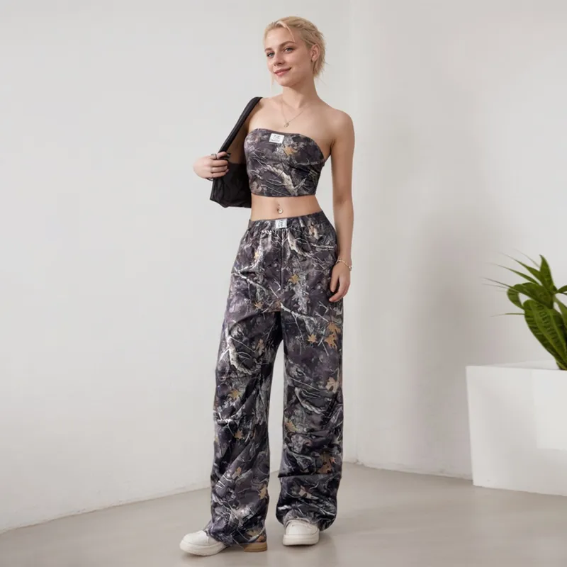 Wholesale W301ST American-style Teenager Women's Fashion Casual Elastic Waist Printed Tube-length Slim-fit Crane Pants suit