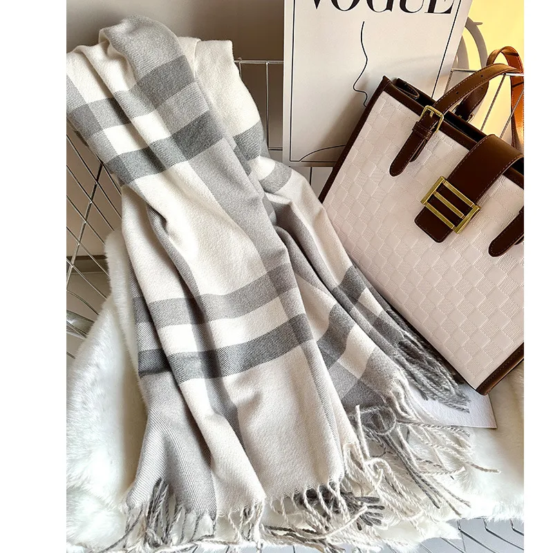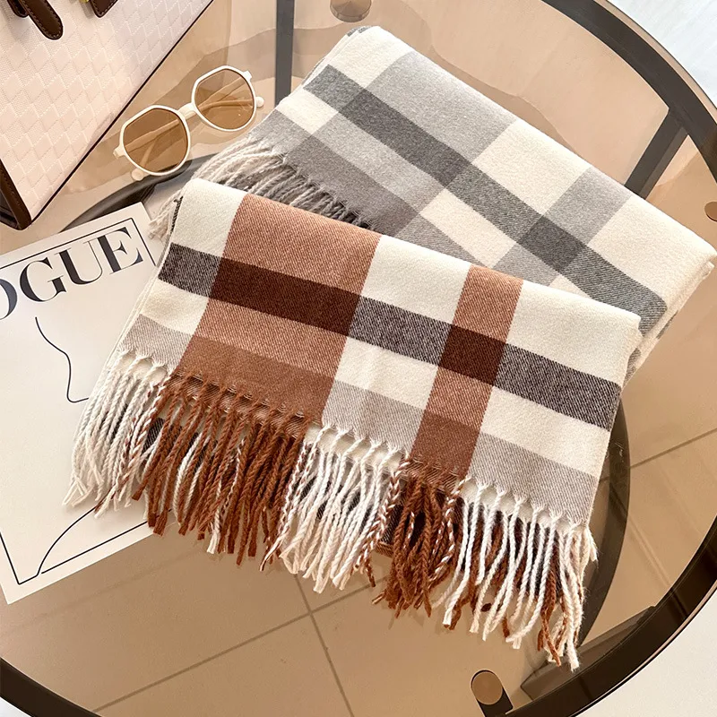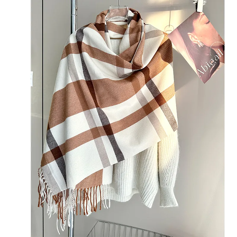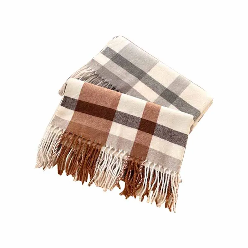 Warm Camel Plaid Cashmere Scarf Ins Design Sense Japan And Good Spined Tassel Shawl A Generation Of Hair