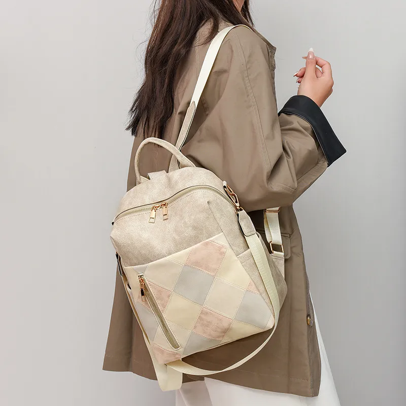 Wholesale Waterproof Color Block Lattice Casual School Daily Women's Backpack