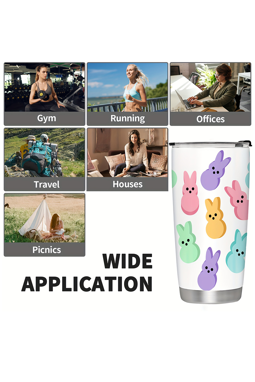 White Cute Bunny Printed Stainless Steel Thermal Vacuum Cup 20oz
