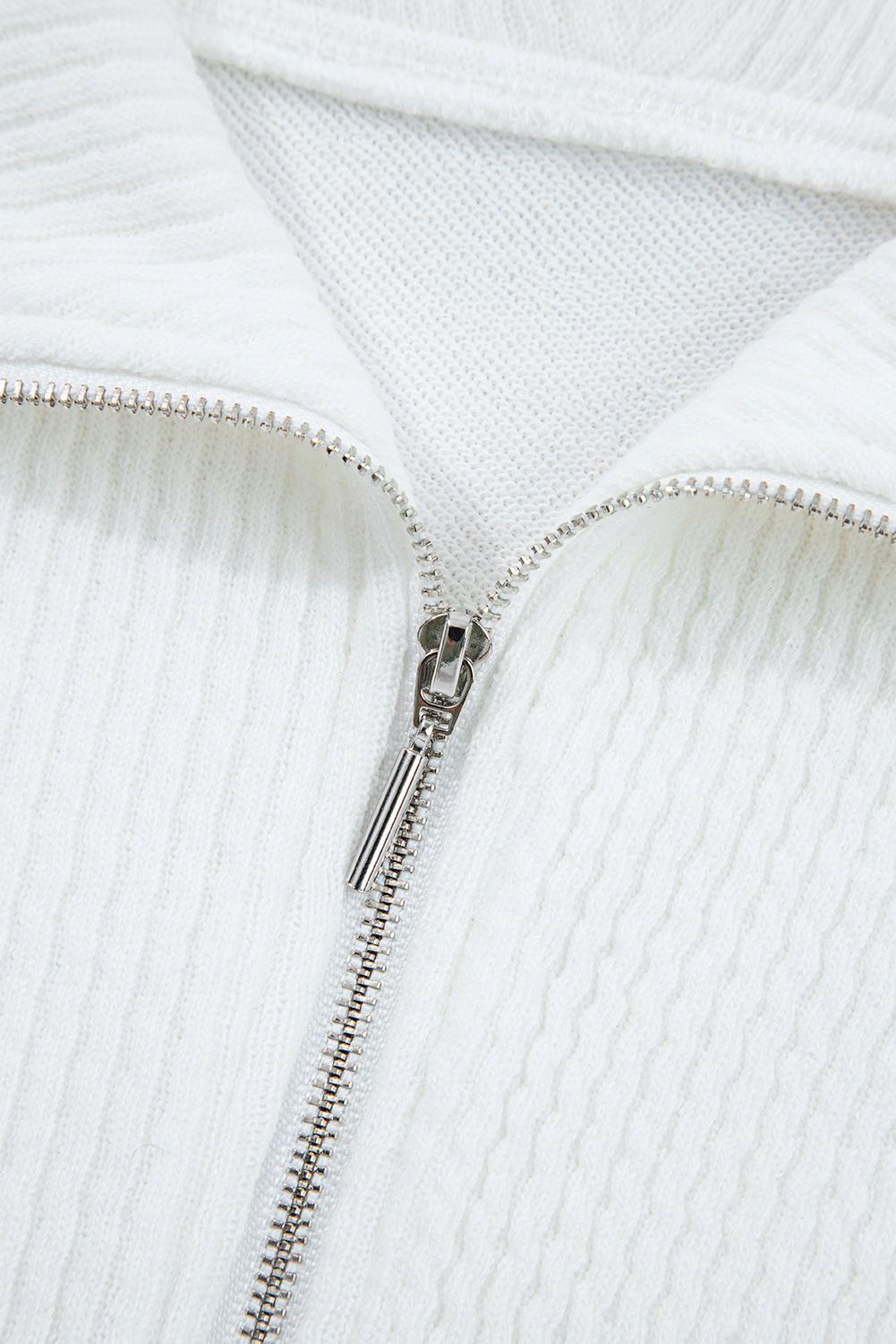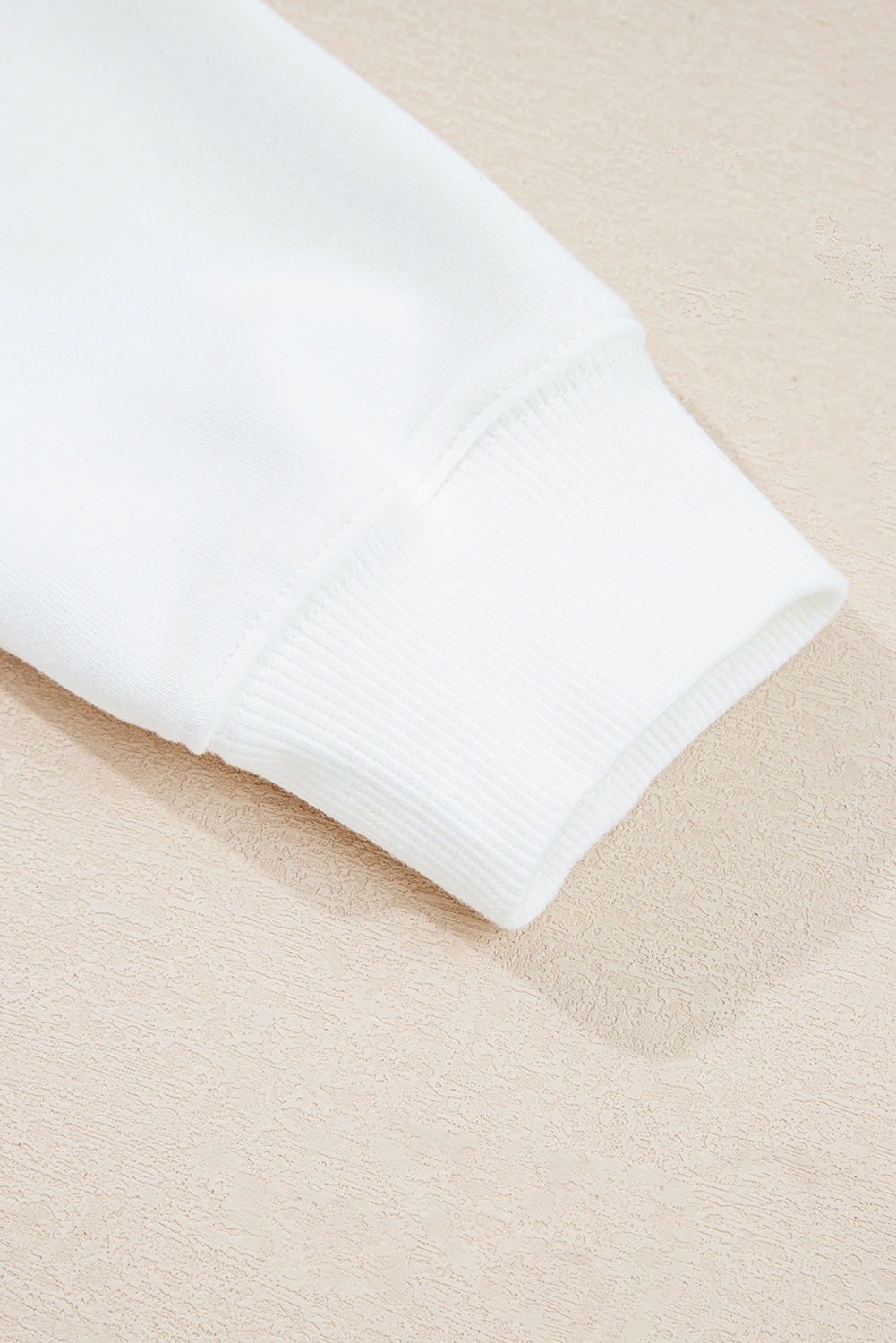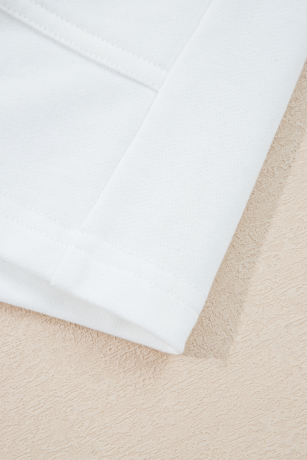 White Ribbed Collar Drop Shoulder Sweatshirt and Shorts Set