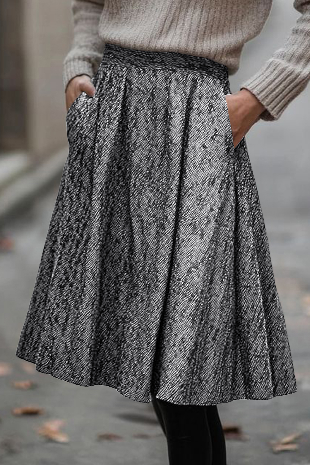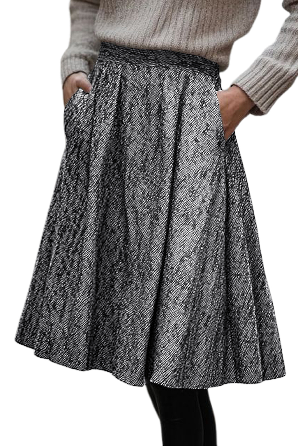 White Solid Color Textured Pleated Midi Skirt