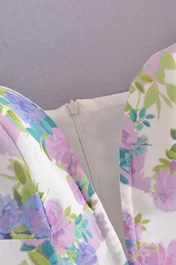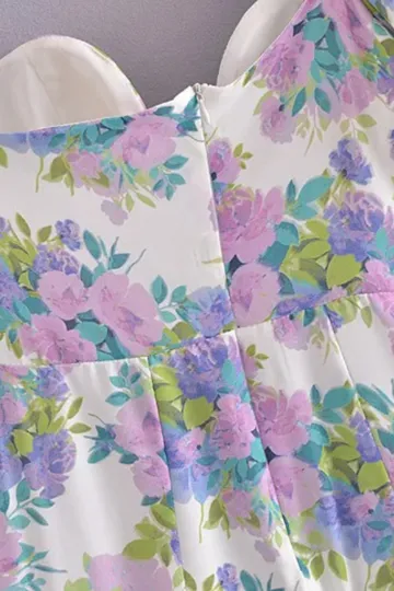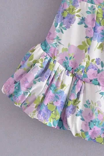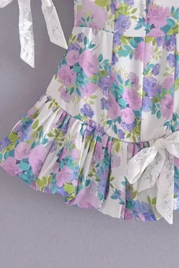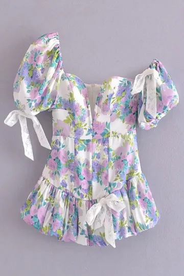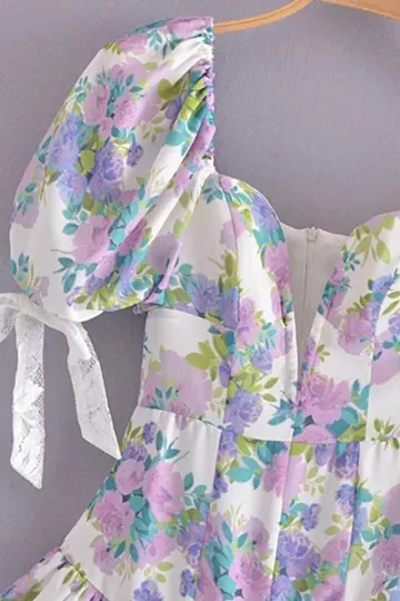 Wholesale Asymmetric Puff Sleeve Dress Lace Lace Ruffle Skirt