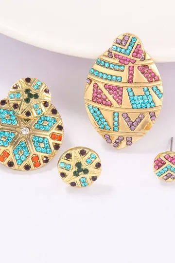 Wholesale Asymmetrical round earrings women's diamond retro earrings earrings women