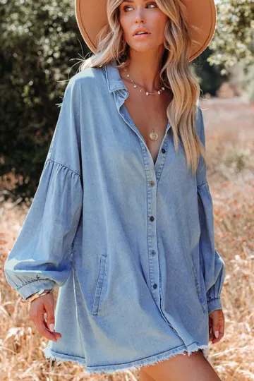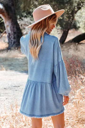 Balloon Sleeve Short Dress Vintage Fashion Loose Denim Dress