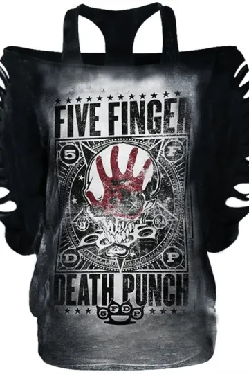 Wholesale Band Print Cut-Out Sleeve Graphic T-Shirt