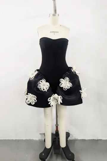 Wholesale Black Floral Bandage Dress with Tutu Tutu