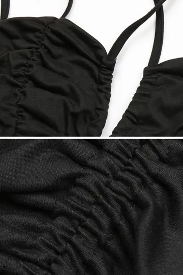 Wholesale Black package hip skirt suspenders solid color pleated dress