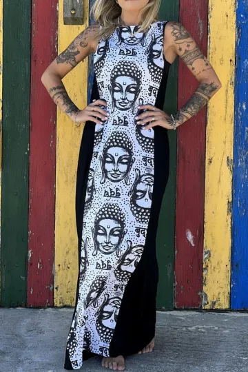 Bohemian Ethnic Print Maxi Sleeveless Dress