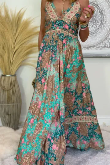 Wholesale Bohemian V-Neck Paisley Maxi Dress