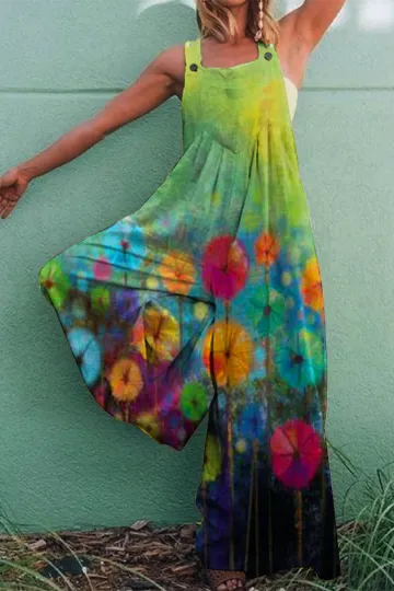 Boho Floral Print Loose Casual Jumpsuit