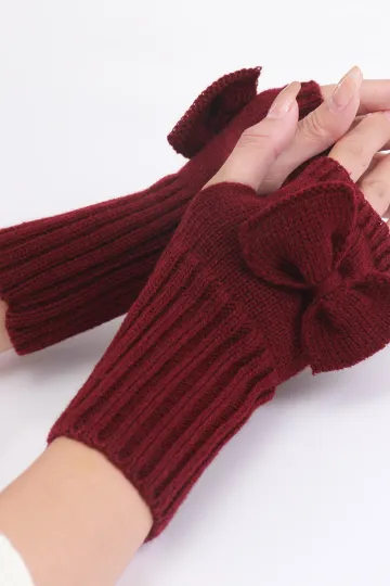 Bow knitted gloves