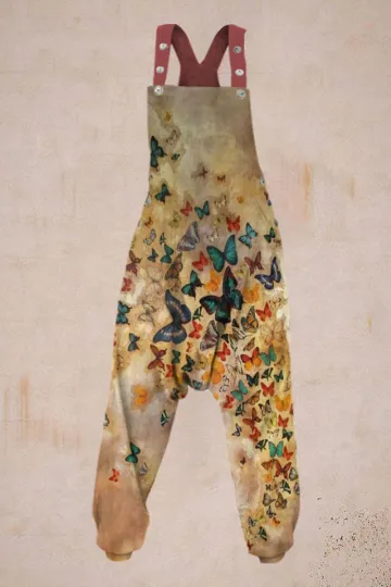 Wholesale Butterfly Print Vintage Loose Jumpsuit