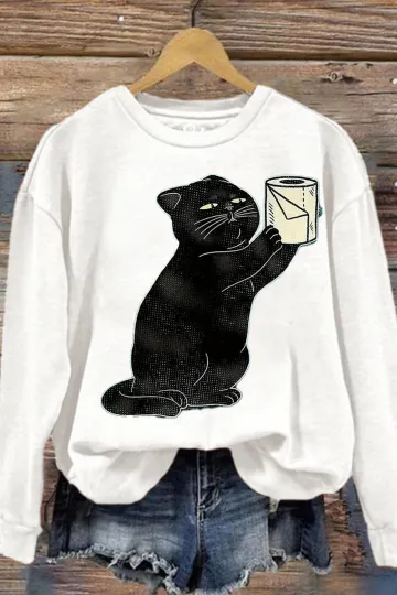 Cartoon Cat Long Sleeve Casual Sweatshirt