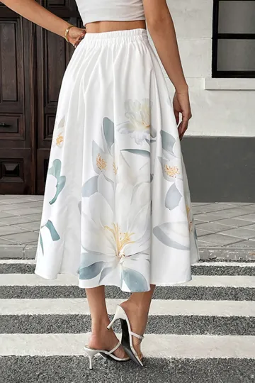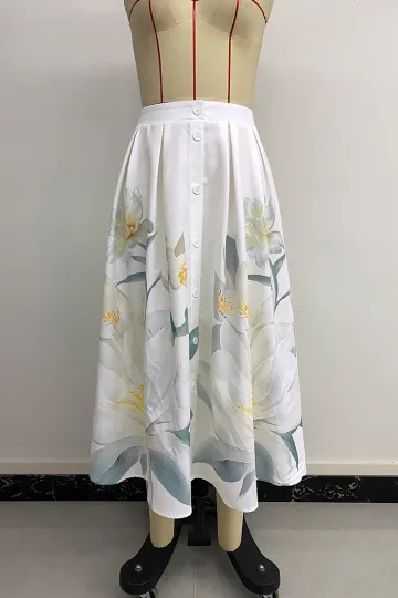 Wholesale Casual Floral Holiday Dress Button Decorated Printed Skirt