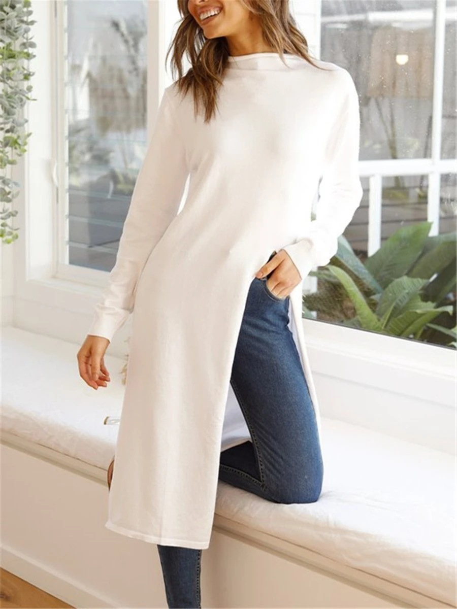 Casual Round Neck Three Quarter Sleeve Plain Blouse