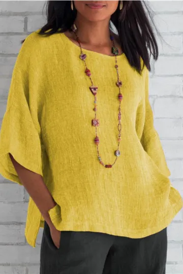Wholesale Casual Round Neck Three Quarter Sleeve Plain Blouse