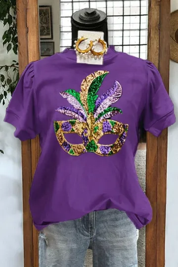 Casual Sequined Mardi Gras T-shirt