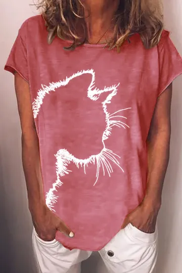 Wholesale Cat head print casual loose round neck short sleeve T-shirt