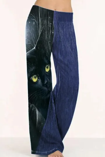 Wholesale Cat Print Casual Loose Wide Leg Pants