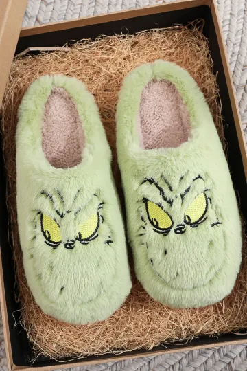 Christmas cotton slippers for men and women, green furry winter warm indoor slippers