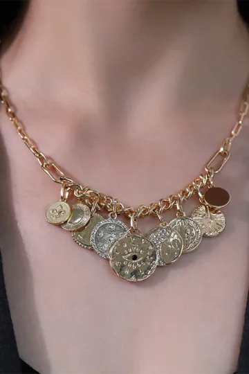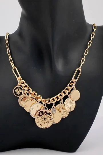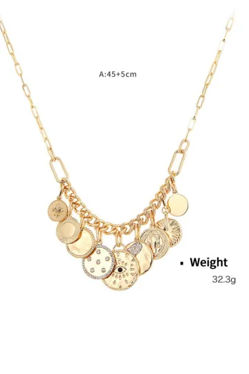 Wholesale New mystical coin-set diamond relief small pendant bib necklace