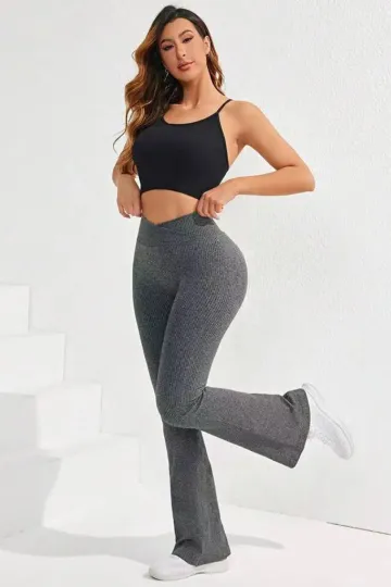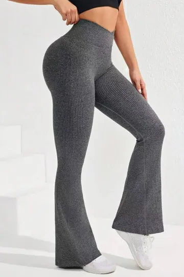 Wholesale Cross Waist Threaded Flared Seamless Yoga Pants
