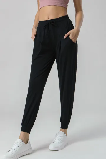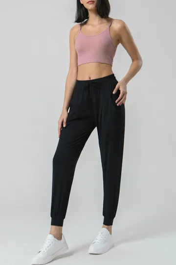 Wholesale Drawstring waist sports stretch trousers Nude sweatpants