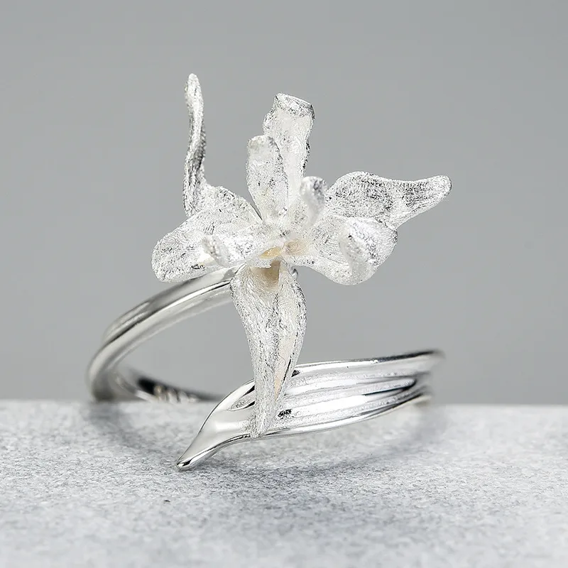 Wholesale Elegant Flower Sterling Silver Plating Open Ring