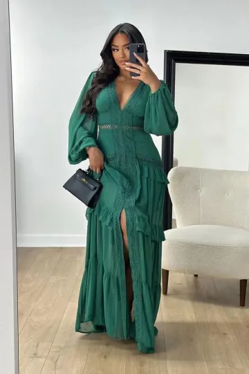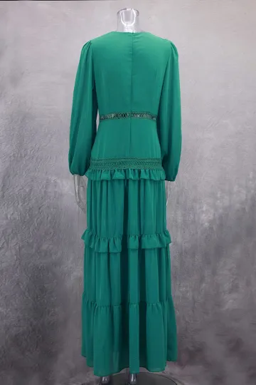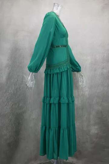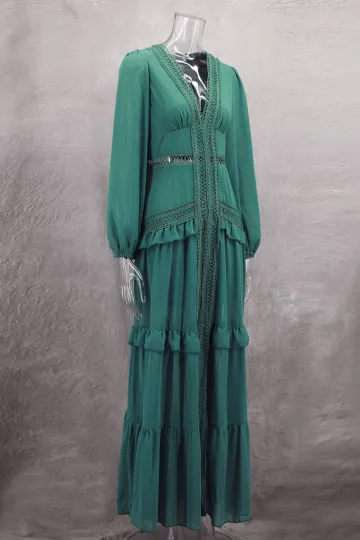 Wholesale Elegant patchwork long sleeve V-neck dress