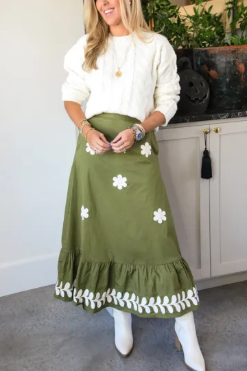 Embroidered Tiered Midi Skirt