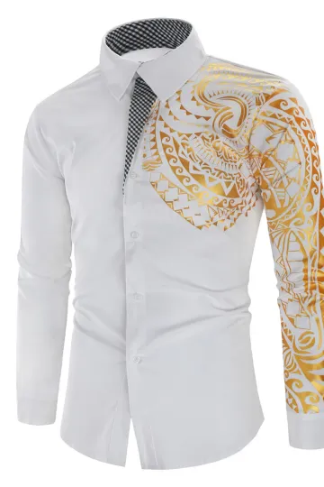 Wholesale Fashion bronzing printed shirt men's long-sleeved shirt