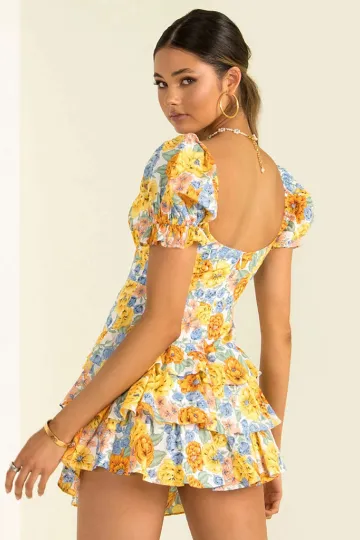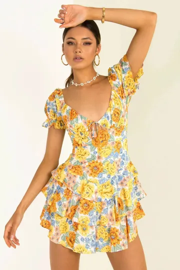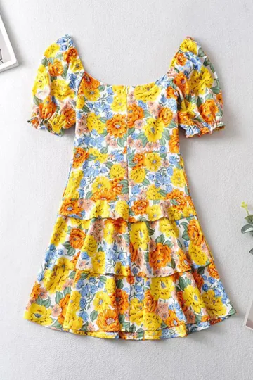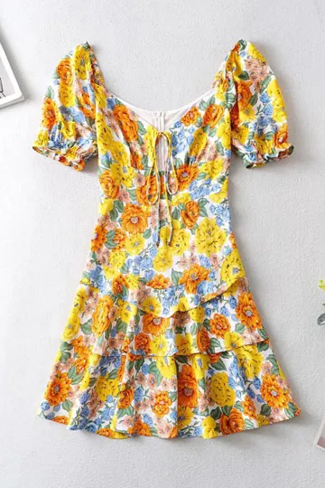 Wholesale Fashion Sexy Slim Chest Tie Short Sleeve Printed Dress Female Skirt