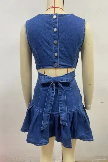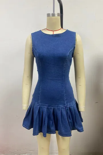 Wholesale Fashionable and sexy sleeveless pleated waist denim dress