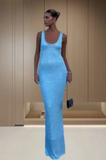 Fashionable and sexy U-neck slim fit sequined hip sleeveless vest dress