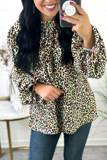 Feeling Bold Taupe & Sepia Animal Frill Neck Top