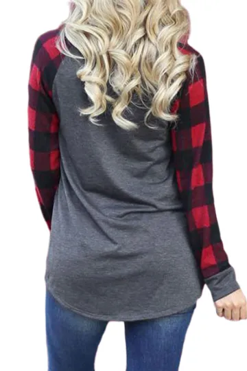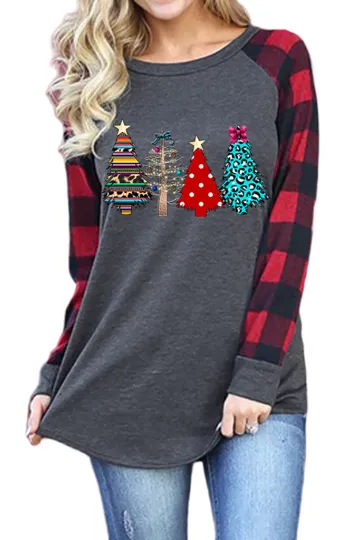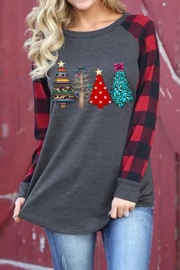 Wholesale Festive Plaid Sleeve Christmas Knit Top