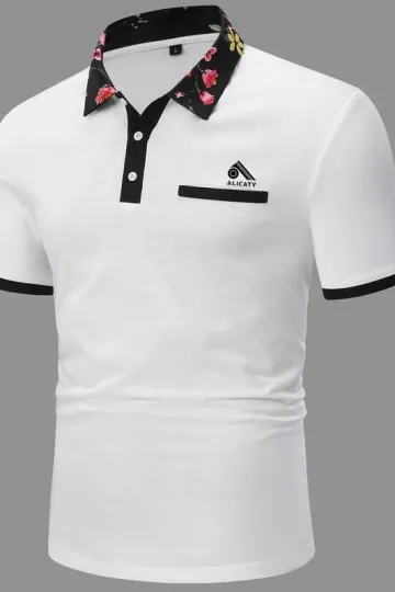 Wholesale Floral Collar Detailed Casual Men's Polo Shirt