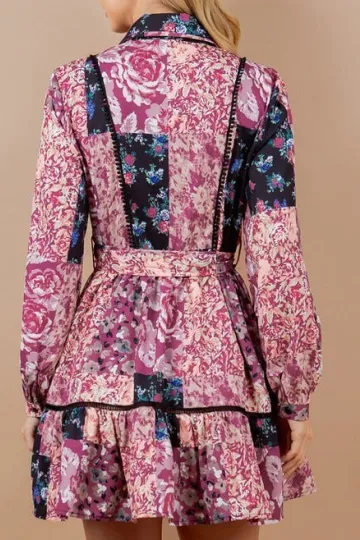 Floral Print Patchwork Long Sleeve Shirt Dress