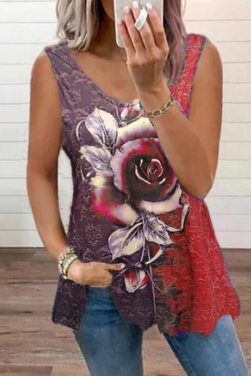 Wholesale Floral Print Casual Cotton Blend Tank Top