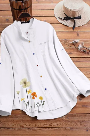 Wholesale Floral Print Casual Loose Button-Down Blouse
