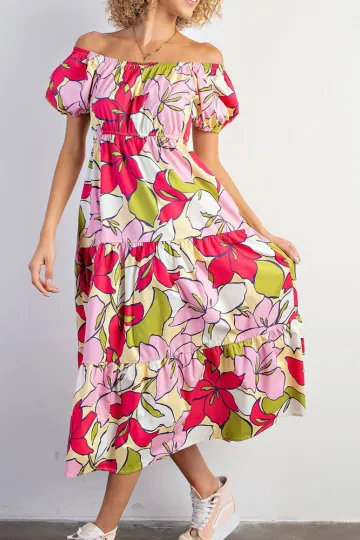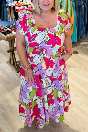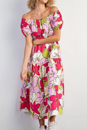 Wholesale Floral Printed Cotton Poplin Maxi Dress